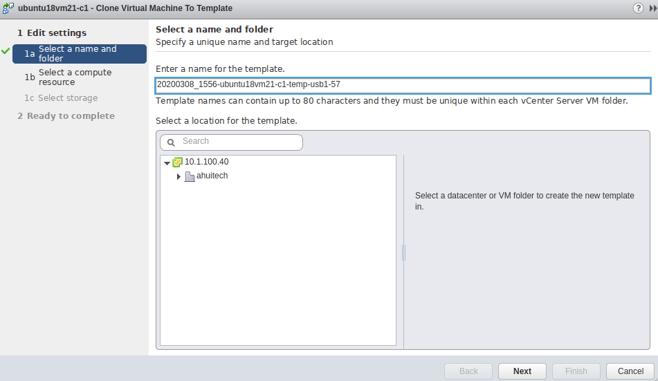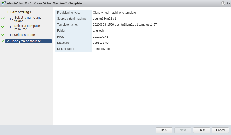 5. Ready to complete and click Finish to begin cloning the virtual machine to template
