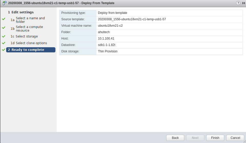 6. Ready to complete and click Finish to begin cloning the template to a new virtual machine!